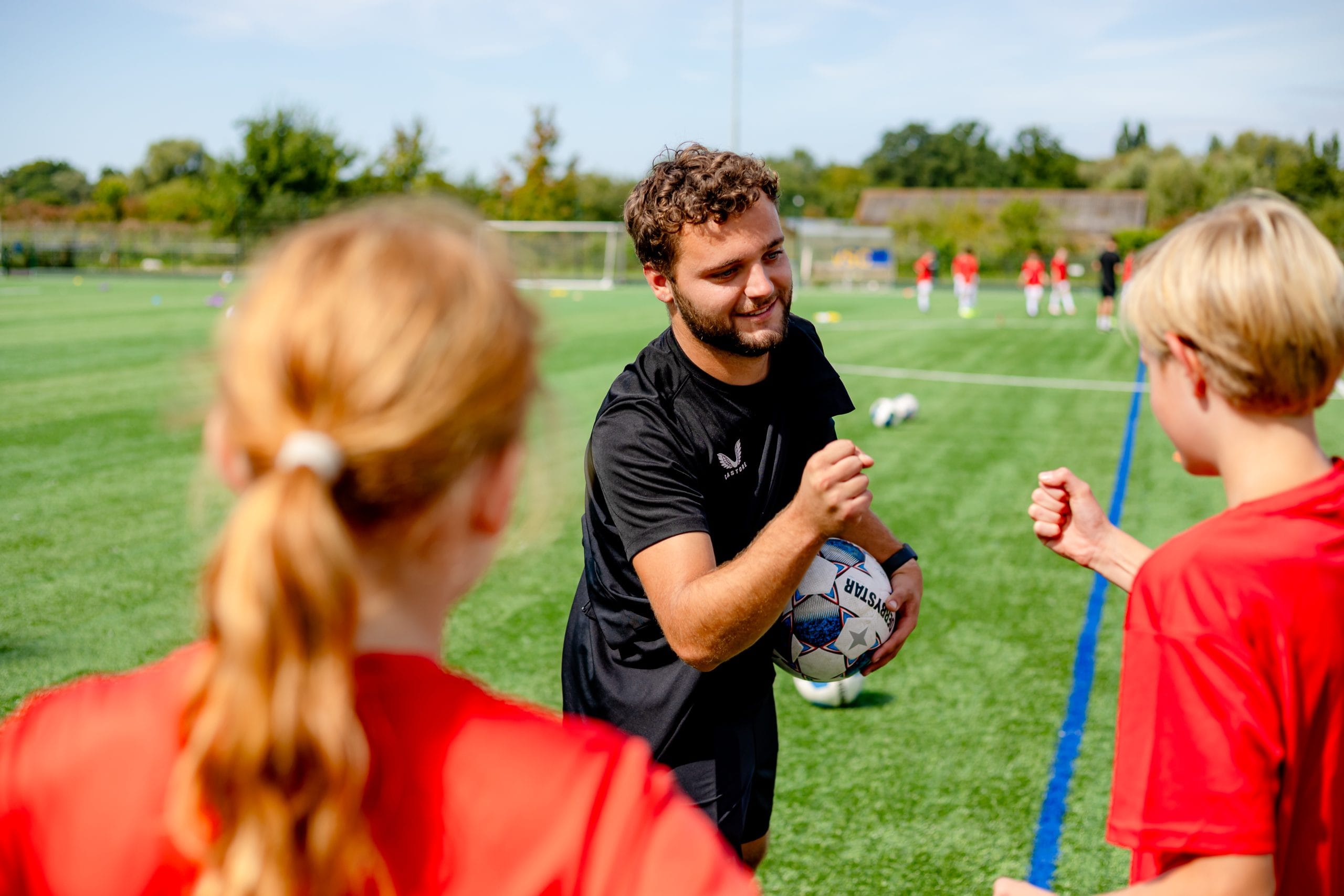 In de jongste leeftijdsgroepen ligt de nadruk op ontdekken, samen spelen en basisveiligheid. Naarmate kinderen ouder worden, verschuift de focus naar verantwoordelijkheid, omgaan met emoties, doelen stellen en invloed hebben op het team.